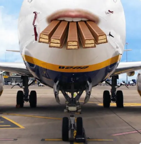 Ryanair ha pubblicato un’immagine generata dall’AI di un aereo imbottito di cioccolatini.