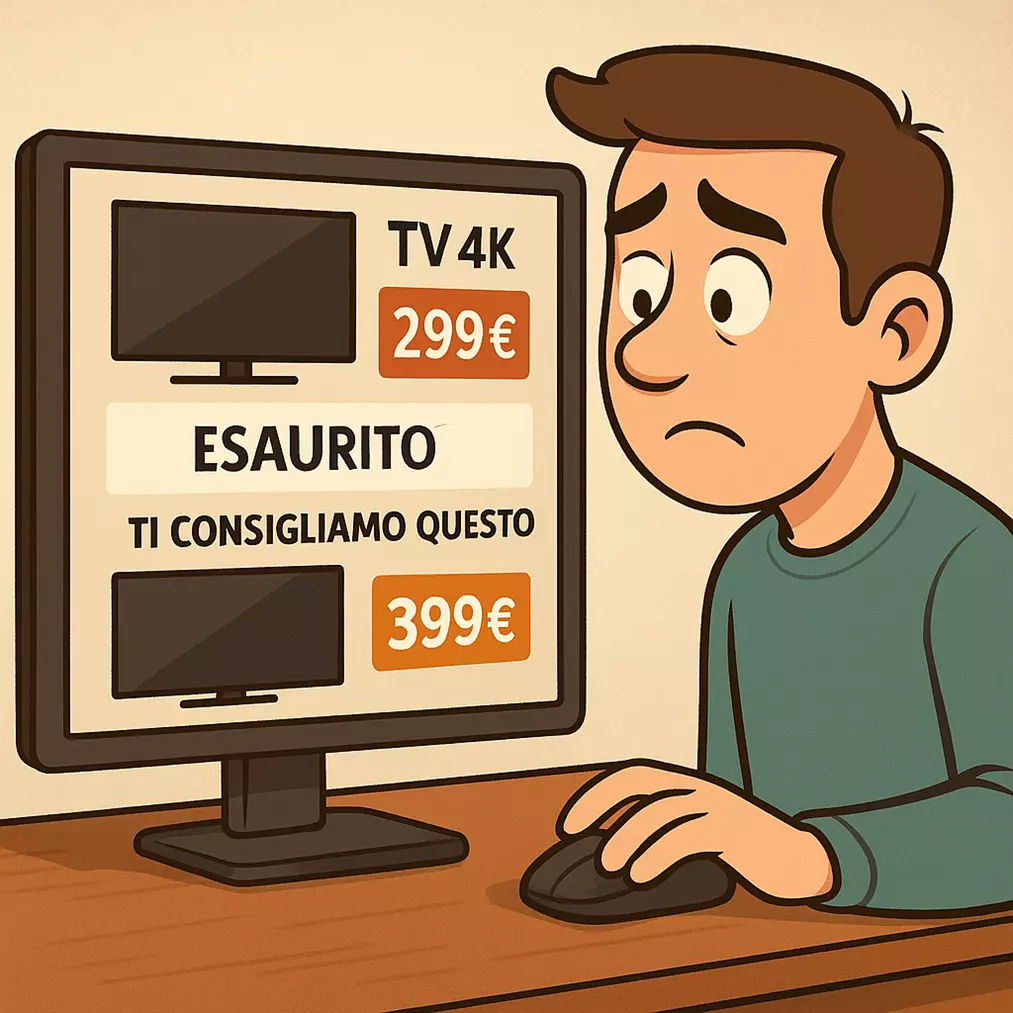 Altro esempio concreto è quello del cliente attratto da un’offerta online che pubblicizza un bene (esempio un televisore di ultima generazione) a un prezzo straordinario. Dopo averlo aggiunto al carrello e aver iniziato il processo di acquisto, scopre che l’articolo non è più disponibile. Al suo posto viene proposta una versione meno avanzata o un modello più costoso. Nonostante la delusione, il cliente, ormai impegnato emotivamente e cognitivamente nell’acquisto, accetta l’alternativa.